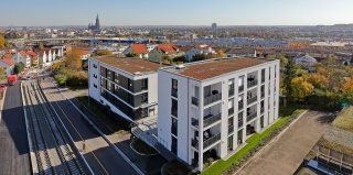 Nach Abbruch und Altlastensanierung der früheren Tankstelle haben wir 21 Wohnungen in zwei Gebäuden errichtet. Der Bezug der Wohnungen erfolgte 2017. Die neuen Bewohner schätzen die Aussichtslage mit Blick über die Stadt und auf das Münster. Bei schönem Wetter hat man von vielen Balkonen Fernsicht bis zu den Alpen.